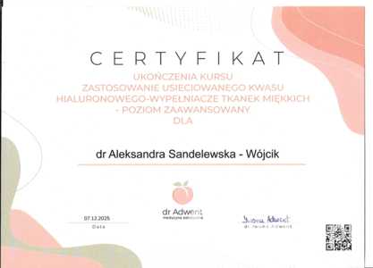 - studia podyplomowe z zakresu medycyny estetycznej,
