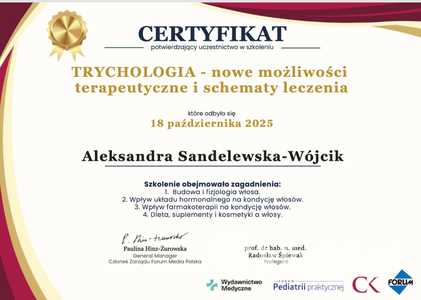- liczne szkolenia i konferencje z zakresu medycyny estetycznej i trychologii.