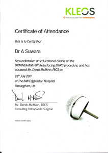 Doskonalił umiejętności w Wojewódzkim Szpitalu Chirurgii Urazowej w Piekarach Śląskich, w Klinice Ortopedii i Chirurgii Ręki AM w Poznaniu, jak również w BMI Edgbaston Hospital w Birmingham oraz Aesculap Akademie w Tuttlingen i Berlinie. Uczył się technik zabiegowych także w Keble College w Oxfordzie oraz w placówkach medycznych w Belgii (Az Nikolaas, European Centre for Knee Research, Heilig Hart Hospital, Salvator Hospital Hasselt).