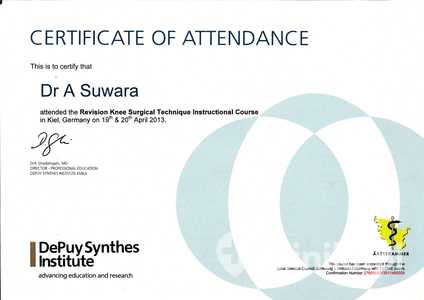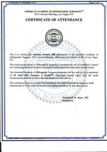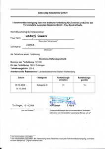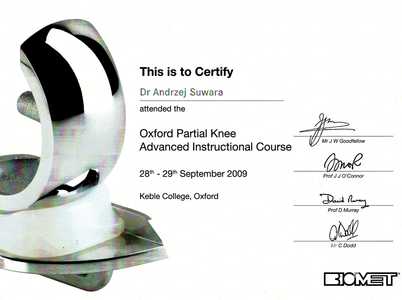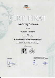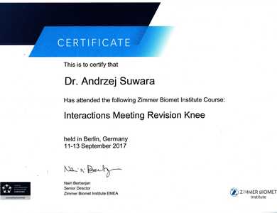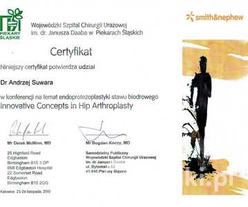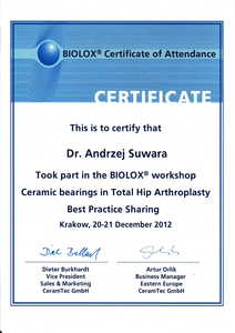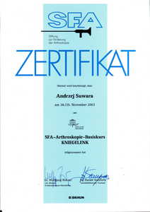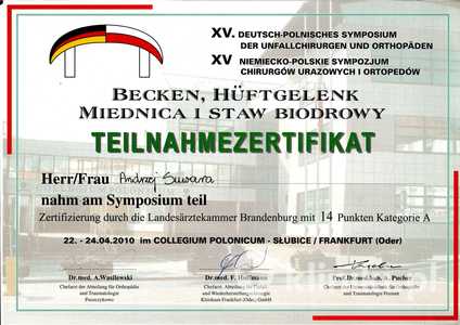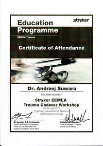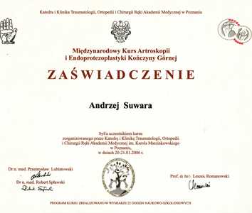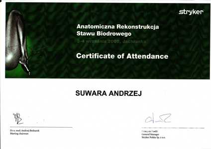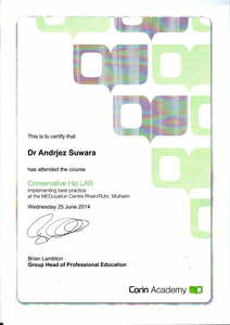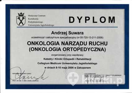 Lista 19 certyfikatów otrzymanych przez dr n. med. Andrzej Suwara, potwierdzające kwalifikacje specjalisty.