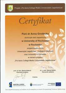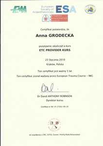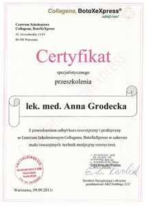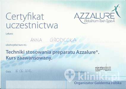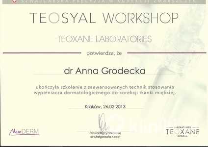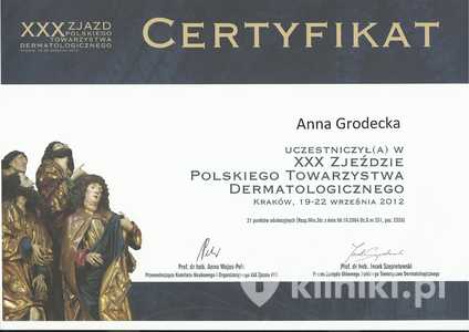 Lek. med. Anna Grodecka jest członkiem stowarzyszeń: Polskiego Towarzystwa Medycyny Estetycznej i Anti-Aging Polskiego Towarzystwa Lekarskiego oraz World Society Interdisciplinary AntiAging Medicine (WOSIAM). Posiada certyfikat instruktora ETC Polskiej Rady Resuscytacji.