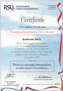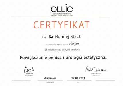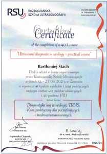 Zdobył certyfikaty m.in. Roztoczańskiej Szkoły Ultrasonografii w dziedzinie USG moszny, USG układu moczowego oraz certyfikat ukończenia kursu powiększania penisa kwasem hialuronowym i tłuszczem autologicznym.