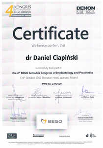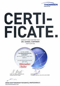 Dr n. med. Daniel Ciapiński jest założycielem, a przez wiele lat także dyrektorem Silesia Study Club of International Team for Implantology, największej organizacji na świecie zrzeszającej implantologów. Jest właścicielem katowickiej kliniki implantologicznej w Katowicach oraz miłośnikiem żeglarstwa i podróży. Jest właścicielem kliniki implantologicznej “Dentrum” w Katowicach.