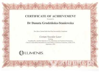 Lista 1 certyfikatów otrzymanych przez lek. Danuta Grudzińska-Staniewska, potwierdzające kwalifikacje specjalisty.
