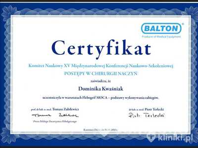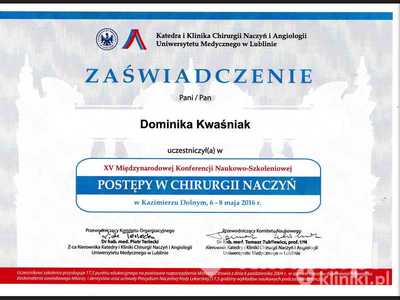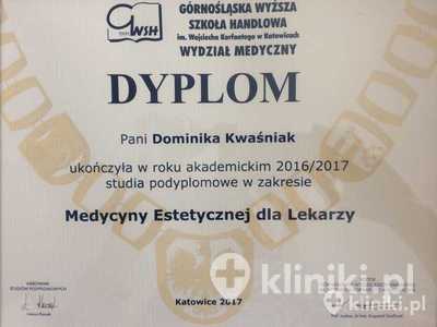 Poniżej znajdują się placówki, w których przyjmuje lek. Dominika Kwaśniak, wraz z cennikiem usług.