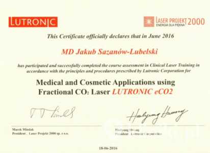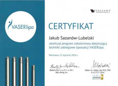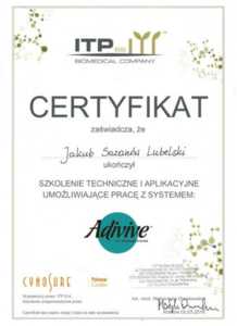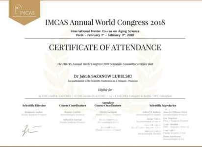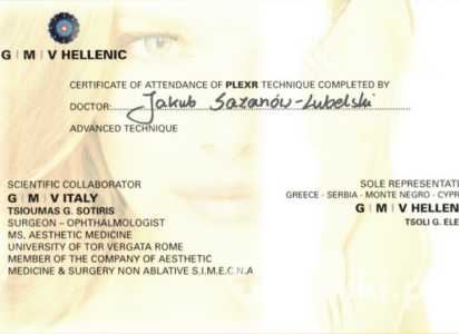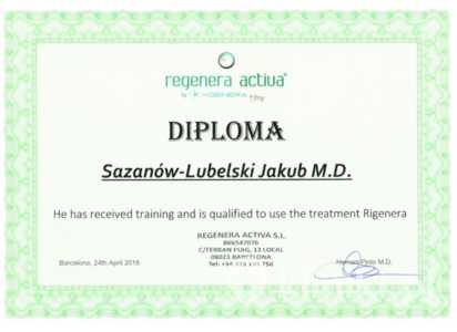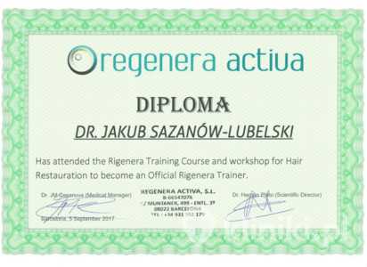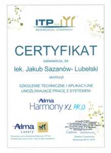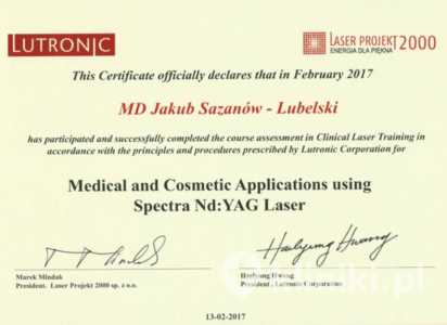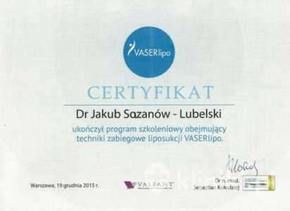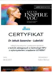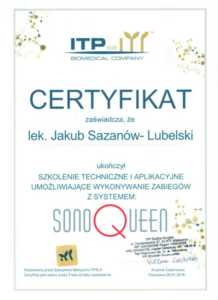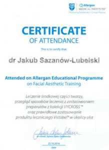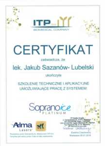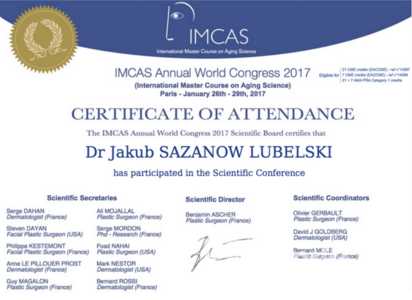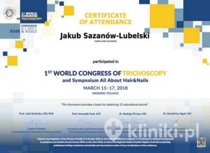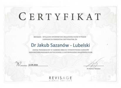 Lista 20 certyfikatów otrzymanych przez dr n. med. Jakub Sazanów-Lubelski, potwierdzające kwalifikacje specjalisty.