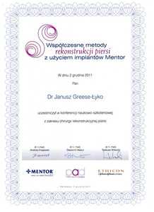 - w 2011 roku wziął udział w konferencji naukowo-szkoleniowej w dziedzinie chirurgii rekonstrukcyjnej piersi w Warszawie,