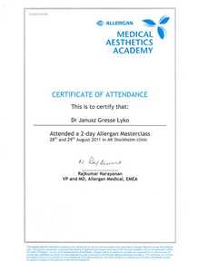 - w 2011 roku doskonalił się w stosowaniu produktów firmy Allergan w AK Stockholm Clinic,
