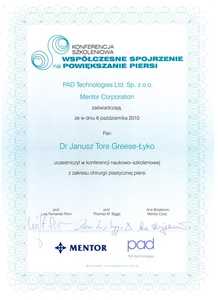 - w 2010 roku wziął udział w konferencji naukowo-szkoleniowej z zakresu chirurgii piersi w Warszawie,