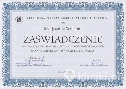 Poniżej znajdują się placówki, w których przyjmuje lek. Joanna Wolanin, wraz z cennikiem usług.