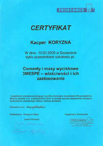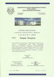 Lista 35 certyfikatów otrzymanych przez dr n. med. Kacper Koryzna, potwierdzające kwalifikacje specjalisty.