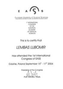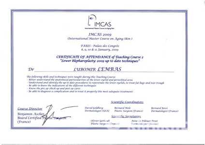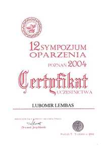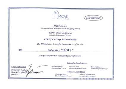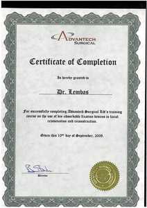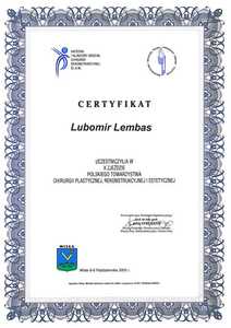Lista 9 certyfikatów otrzymanych przez dr n. med. Lubomir Lembas, potwierdzające kwalifikacje specjalisty.