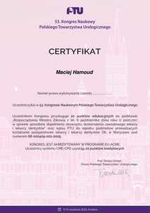 Lista 1 certyfikatów otrzymanych przez lek. Maciej Hamoud, potwierdzające kwalifikacje specjalisty.