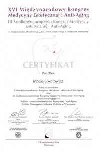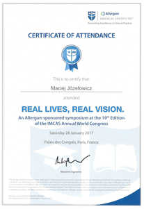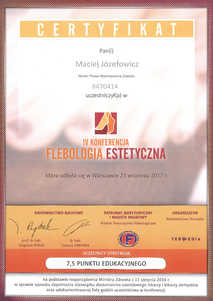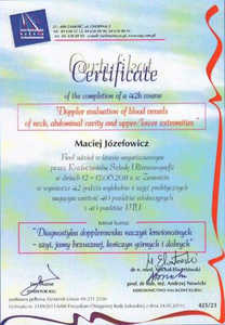 Lista 8 certyfikatów otrzymanych przez dr n. med. Maciej Józefowicz, potwierdzające kwalifikacje specjalisty.