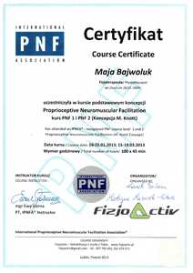 - Proprioceptive Neuromuscular Facilitation kurs PNF 1 i PNF 2 (koncepcja M. Knott),