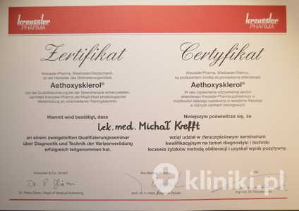 Lek. M. Krefft na bieżąco doszkala się, pogłębiając wiedzę oraz zdobywając nowe umiejętności w zakresie stosowania nowoczesnych technik leczenia schorzeń flebologicznych, bariatrycznych, przepuklin oraz chorób proktologicznych. Odbył kursy w zakresie chirurgii bariatrycznej w centrum szkoleniowym J&J w Hamburgu, w AZ Jan Palfijn w Gent w Belgii oraz kurs z zaawansowanych technik laparoskopowych w leczeniu przepuklin w centrum IRCAD w Strasburgu.