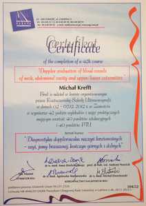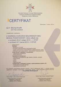 Lista 5 certyfikatów otrzymanych przez lek. Michał Krefft, potwierdzające kwalifikacje specjalisty.