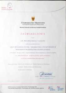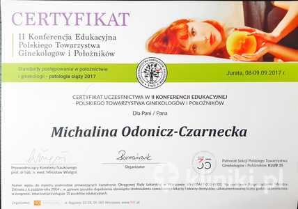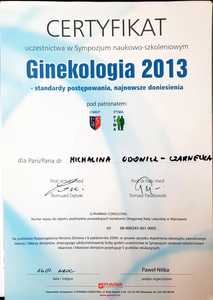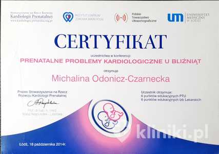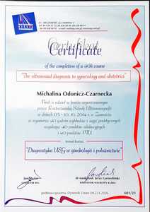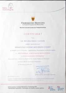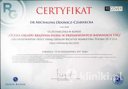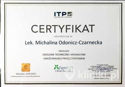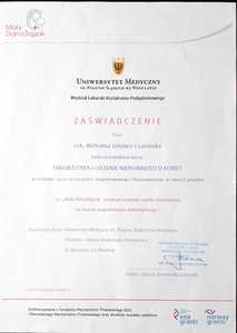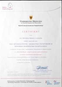 Lista 12 certyfikatów otrzymanych przez dr Michalina Odonicz-Czarnecka, potwierdzające kwalifikacje specjalisty.