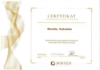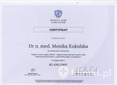 Lista 2 certyfikatów otrzymanych przez dr n. med. Monika Kukulska, potwierdzające kwalifikacje specjalisty.
