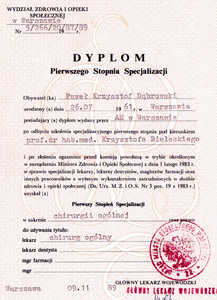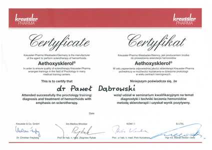 Lista 2 certyfikatów otrzymanych przez lek. Paweł Dąbrowski, potwierdzające kwalifikacje specjalisty.