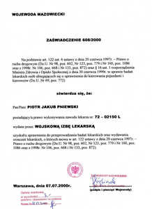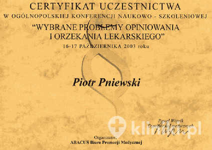 Poniżej znajdują się placówki, w których przyjmuje lek. Piotr Pniewski, wraz z cennikiem usług.