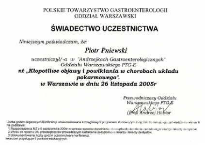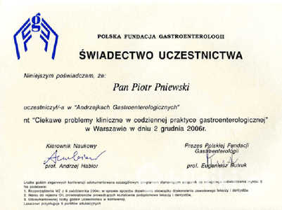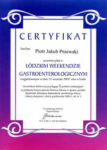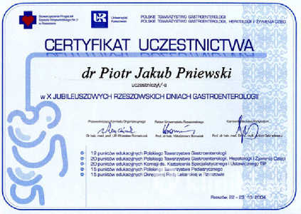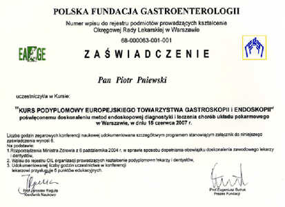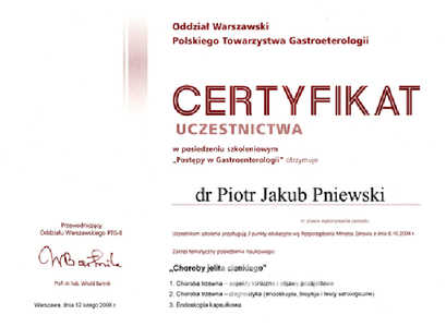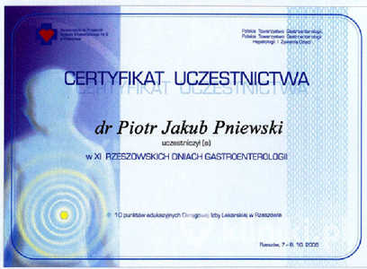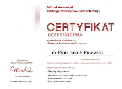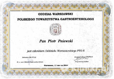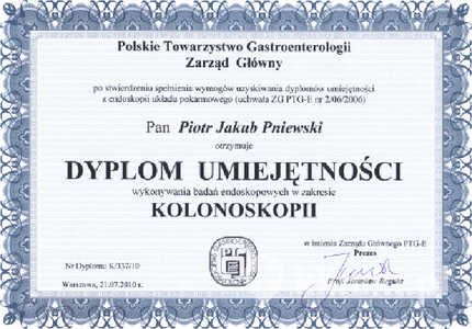 Lek. Piotr Pniewski przeprowadza diagnostykę endoskopową – gastroskopię, kolonoskopię i sigmoidoskopię. Specjalizuje się w rozpoznawaniu i leczeniu chorób układu pokarmowego.
