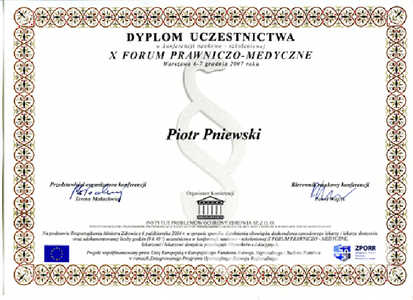 Lek. Piotr Pniewski w 1989 roku ukończył Akademię Medyczną w Warszawie. Staż podyplomowy zrealizował w Centralnym Szpitalu Klinicznym MSW w Warszawie. Jest również absolwentem studiów podyplomowych na kierunku Zarządzanie zakładami opieki zdrowotnej w Szkole Głównej Handlowej w Warszawie. Posiada specjalizację drugiego stopnia w dziedzinie chorób wewnętrznych. Doktor w swojej karierze zawodowej współpracował, między innymi, z Lecznicą Ministerstwa Zdrowia i Opieki Społecznej oraz z Instytutem Geriatrii, gdzie pełnił funkcje kierownicze. Później związał się z Zakładem Diagnostyki Obrazowej i Endoskopii Lecznicy MZiOS. Doktor Pniewski należy do Polskiego Towarzystwa Gastroenterologicznego i Polskiego Towarzystwa Hepatologicznego oraz do Towarzystwa Promocji Jakości w Służbie Zdrowia. Bierze czynny udział w wielu konferencjach i zjazdach medycznych.