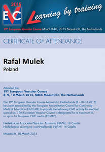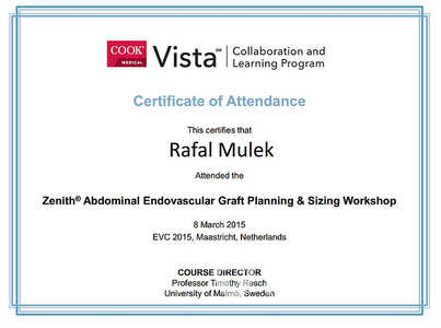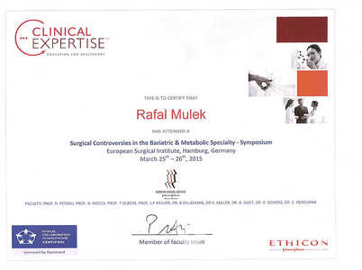 Regularnie rozwija swoje doświadczenie i zainteresowania zawodowe poprzez udział w szkoleniach, zwłaszcza z zakresu chirurgii laparoskopowej oraz małoinwazyjnych metod leczenia chorób naczyń.