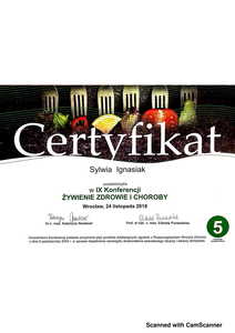 - Uniwersytet Przyrodniczy we Wrocławiu, 3 semestralne Studia Podyplomowe – „Żywienie człowieka w profilaktyce zdrowotnej”;