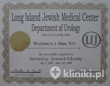 Lista 2 certyfikatów otrzymanych przez dr n. med. Włodzimierz Klima, potwierdzające kwalifikacje specjalisty.