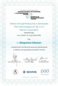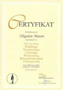 Dr Mazan jest niezwykle doświadczonym i utytułowanym chirurgiem, który swoje zawodowe zainteresowania bezustannie rozwija, uczestnicząc w różnorodnych szkoleniach i kursach, organizowanych zarówno w kraju, jak i za granicą. Był uczestnikiem III International Matrix Course w Sztokholmie, brał także udział w Międzynarodowym Sympozjum Chirurgii Estetycznej oraz konferencji naukowo-szkoleniowej „Chirurgia piersi – bezpieczeństwo przede wszystkim".