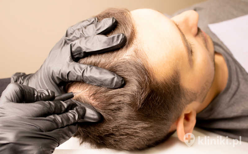 Ważna jest ocena stanu skóry głowy (wykluczenie aktywnych stanów zapalnych, zakażeń, nasilonego łojotoku), skłonności do bliznowców oraz chorób autoimmunologicznych. W przypadku stwierdzenia przeciwwskazań zabieg należy odroczyć lub rozważyć alternatywne metody. Lekarz może zalecić dodatkowe badania lub przygotowanie farmakologiczne skóry głowy.